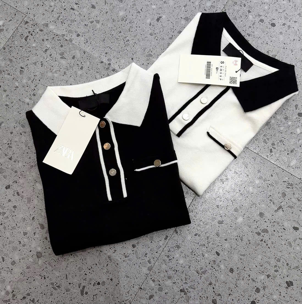 Dệt kim polo form ôm nè khách ơi, áo mặc vào nhìn rất gọn ạ, phần tay cũng ôm nên ai có bắp tay lớn cân nhắc nhé. Chất dệt kim co giãn, ôm nhưng lại ko lộ mỡ, mặc eo ót đẹp nhé.
