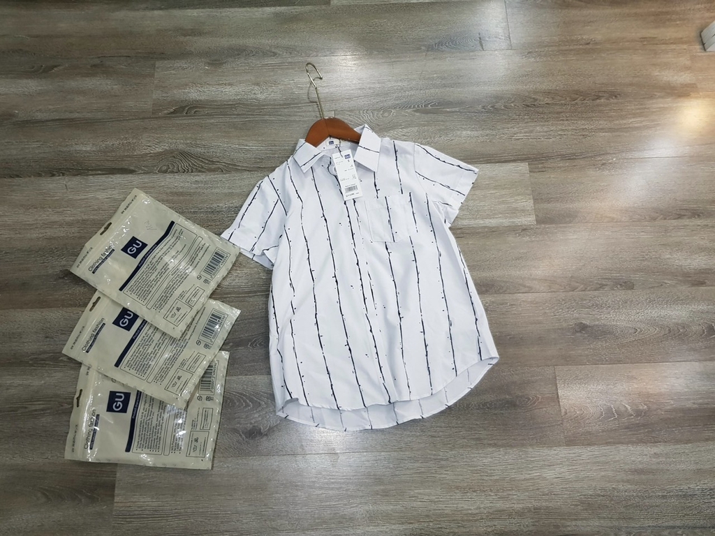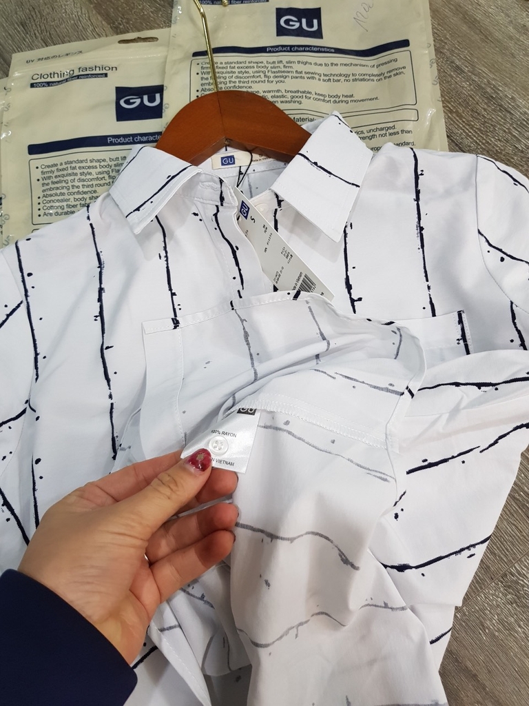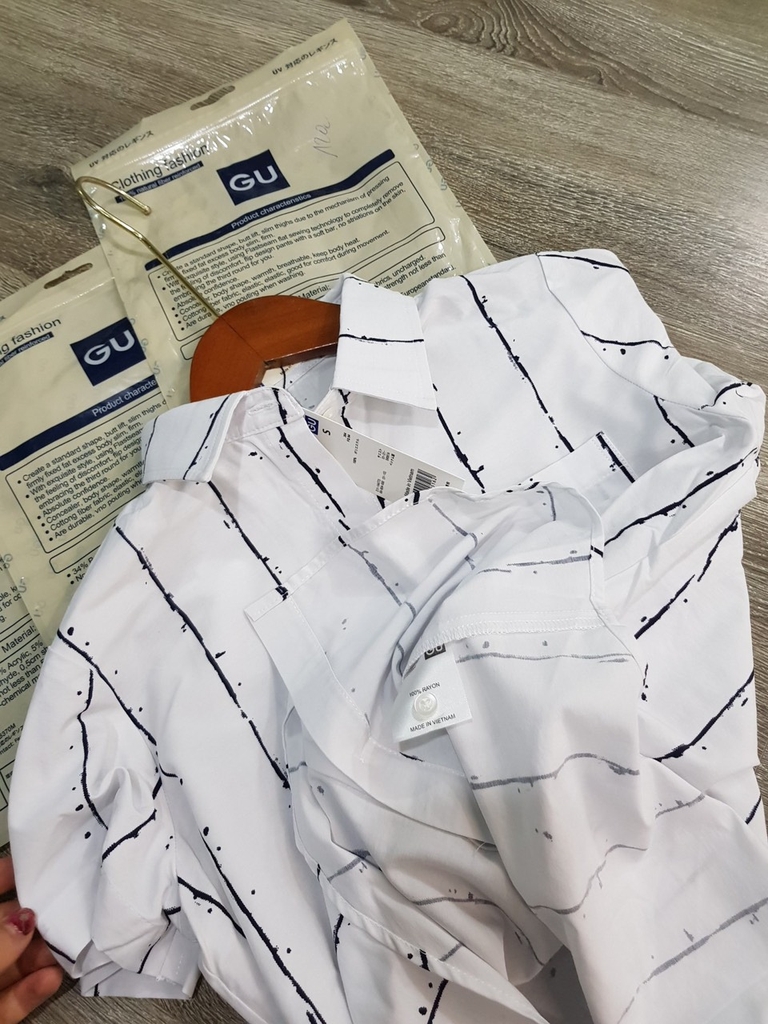 Áo sơ mi G.U vải mềm mát rượi luôn cả nhà ơi. Nguyên cúc dự phòng, full túi. Dáng áo gọn người nhé, mặc vừa vừa đi làm ok lém, tôn dáng, hoạ tiết lạ. Chất có độ co giãn nhẹ, cơ bản cực dễ mặc nhé.