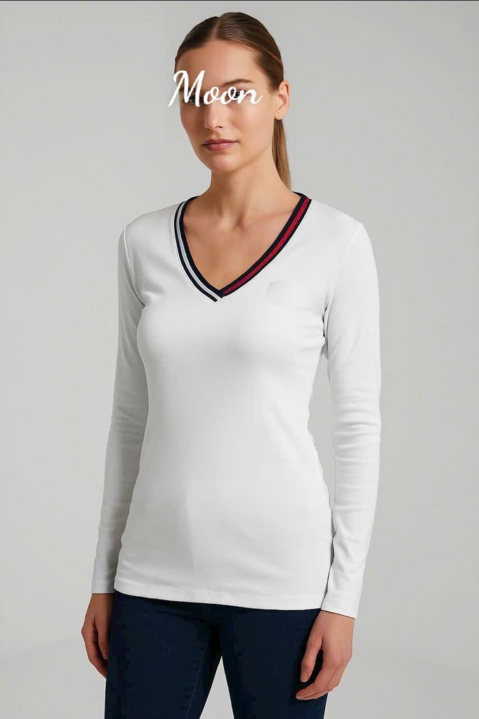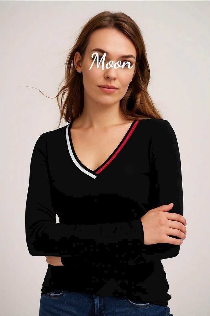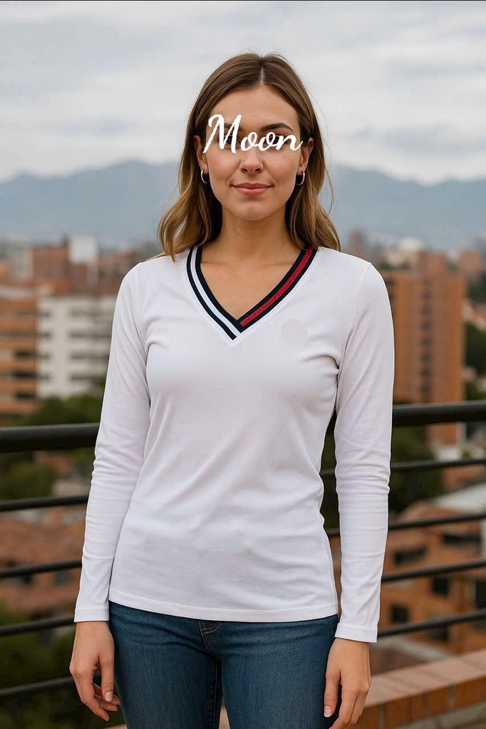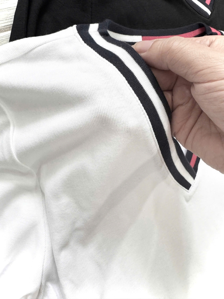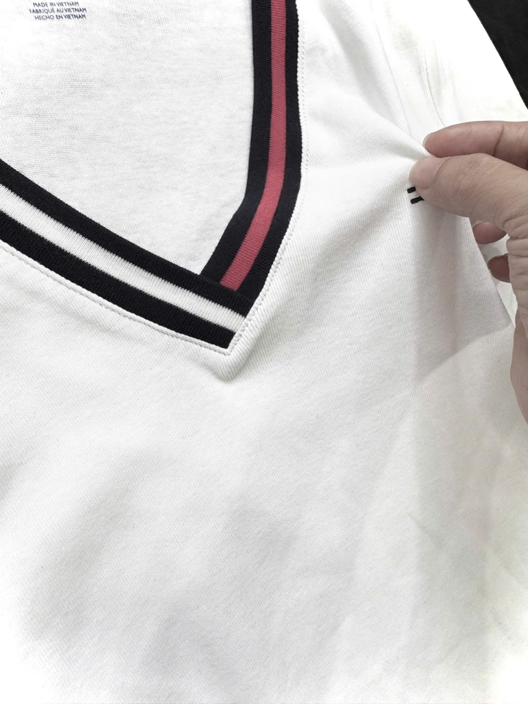 Xịn đẹp ghê á, mà hem dám chụp cận hiệu . Chất thun đúng chuẩn cotton nó đẹp mê, dáng ôm nhẹ theo người, cổ tim viền sắc nét. Áo dáng dài 63cm.