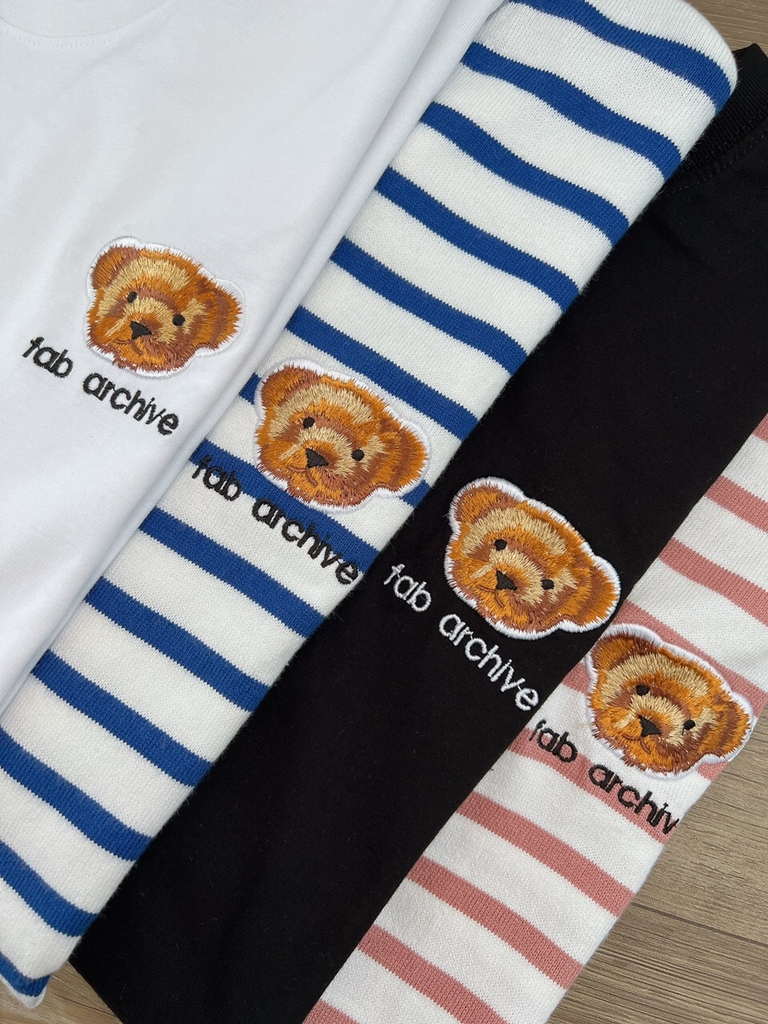 Unisex nam nữ mặc được lun nhé. Áo dáng suông rộng dấu quần,vai trễ, thêu gấu xinh lắm.