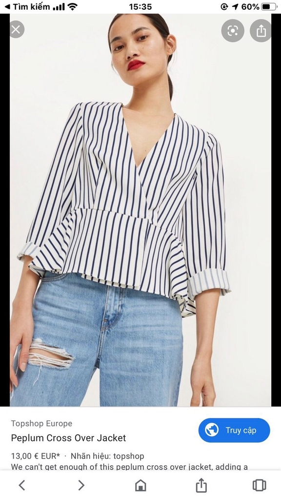 Blazer Xuân hè TOPSHOP dư xịn. Chất vải mềm . Có thể mặc khoác hay mặc riêng áo không như áo thường. Cúc bấm đính nên có thể tự điều chỉnh lại độ rộng cổ theo ý người mặc nha. Áo chất nhẹ, mát, mặc thời trang nhé, phối thêm các dạng áo dây bên trong là bao xinh. Áo dáng vừa gọn, lên tôn dáng ạ.