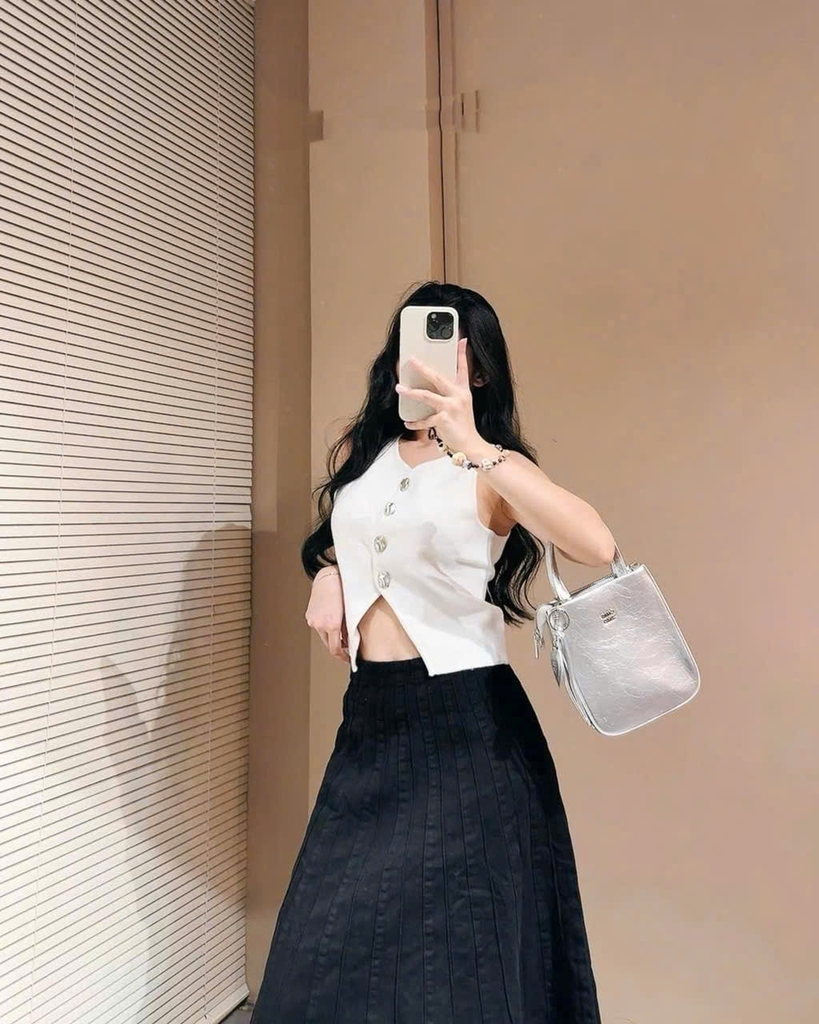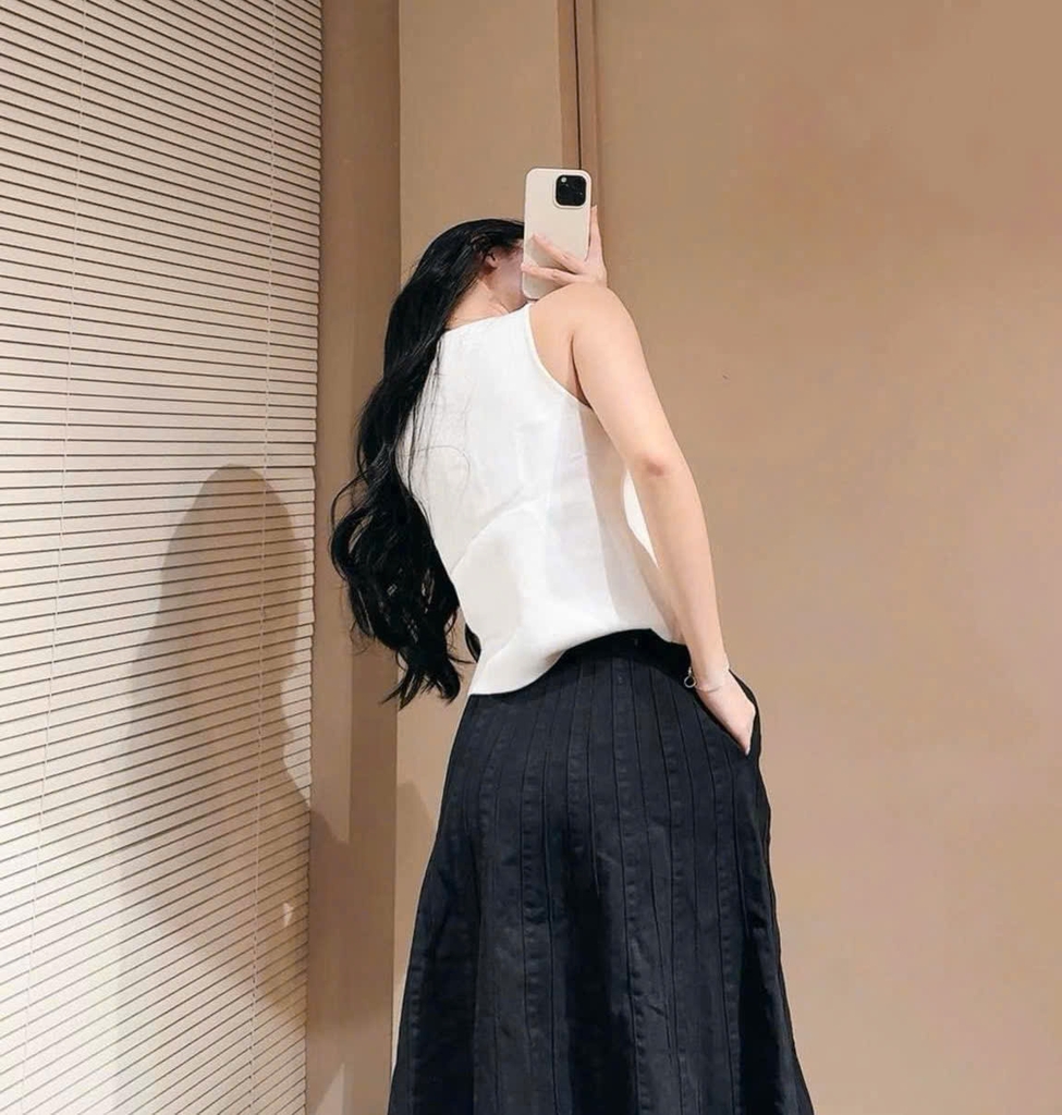 Chân váy đen khoá hông hot hit e về đây ạ.