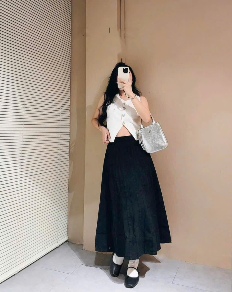 Chân váy G|p chất jean dày mềm rủ dáng, có độ co giãn nên mặc dễ chịu ạ . Dáng A chần li nguyên váy, có túi 2 bên, lưng cao phủ rốn. Dài 83cm