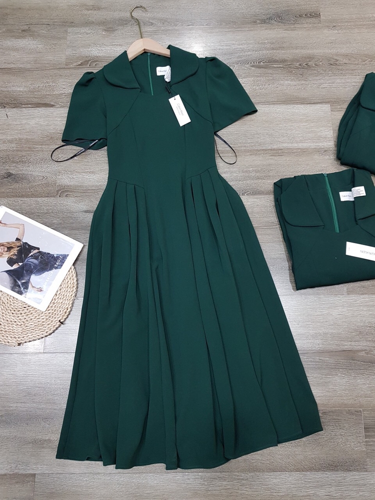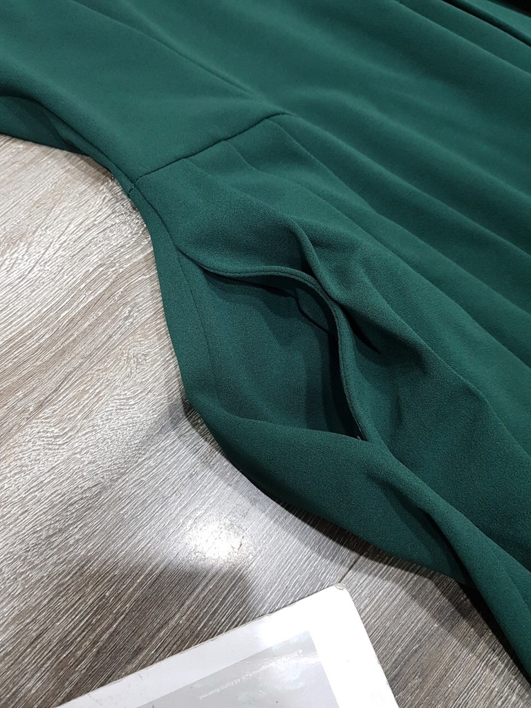 Màu xanh lá đậm rất tôn da, cổ bẻ nữ tính, nhấn tùng mềm mại. Chất cát hàn co giãn tốt, form khá lớn cho các chị em từ 51kg trở lên nhé.