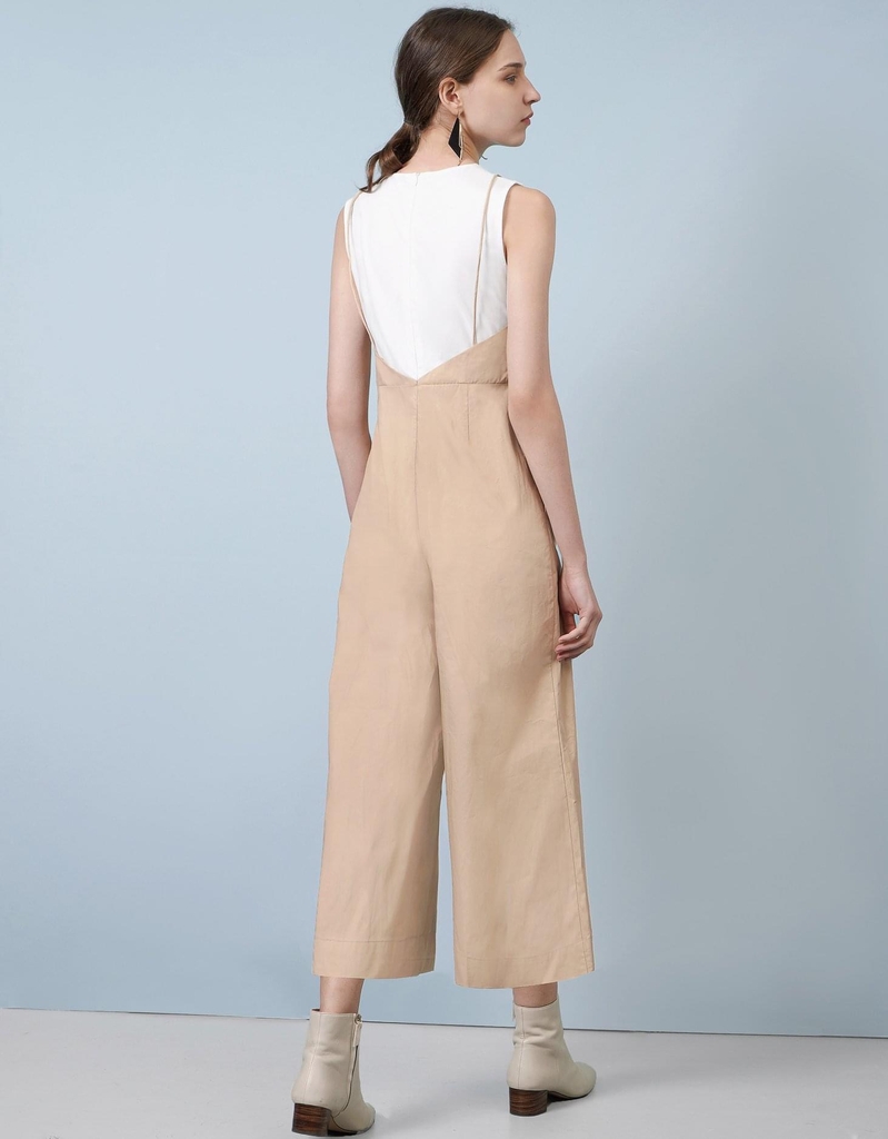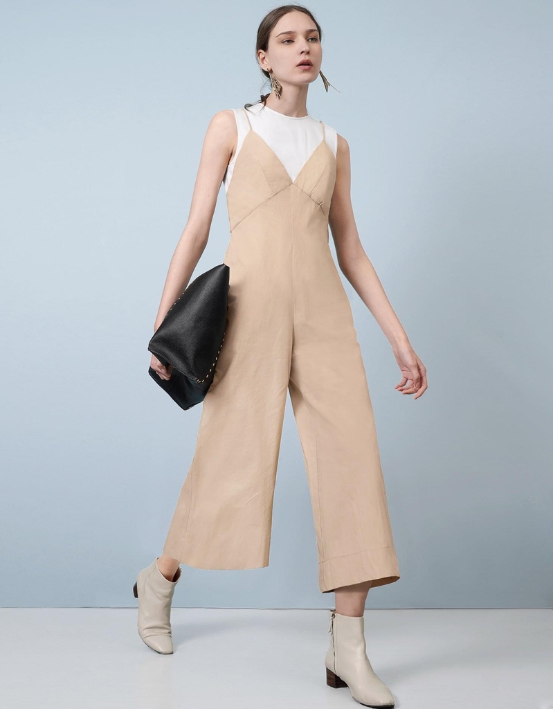 Jumpsuit E.lborn siêu trẻ trung mấy chế ơi. Chất kaki thô, vải hơi cứng giữ form, mà mặc lên trẻ trung dễ thương lắm. Chất ko co giãn nên form hơi nhỏ tí, cho bạn nào tầm 1.6 trở xuống mặc nhé. Áo trắng may liền, dây vai may theo chuẩn nên ai lưng ngắn thì dây vai sẽ hơi dư, mình có thể sửa 1 chút cho vừa nhé. Khoá kéo sau lưng, có túi 2 bên hông.