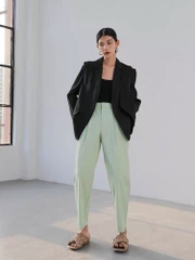 Quần tây baggy 9 tất Vero Moda cạp cao, dáng mới toanh luôn, chất mới siêu đẹp cả nhà ới. Chất vải tây ít nhăn, chất dày vừa đủ để giữ form, dáng quần siêu trẻ trung, phối đi chơi hay đi làm xinh lém.