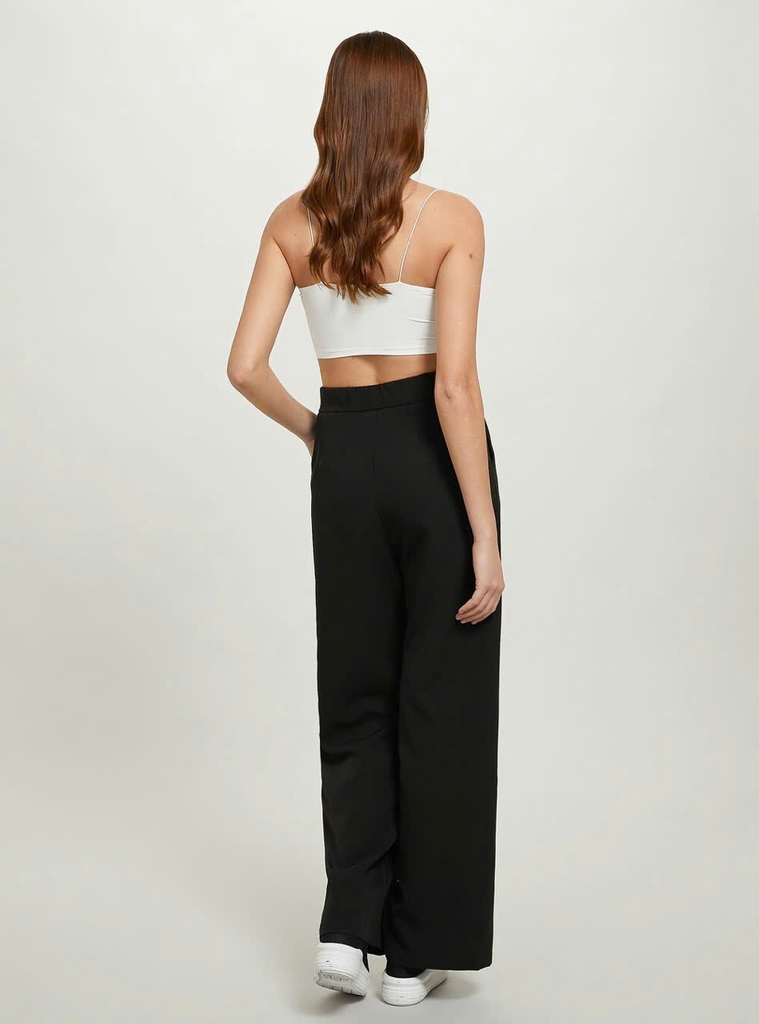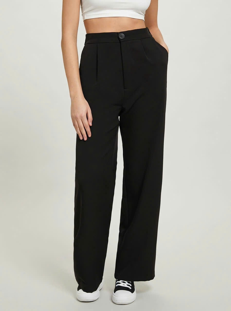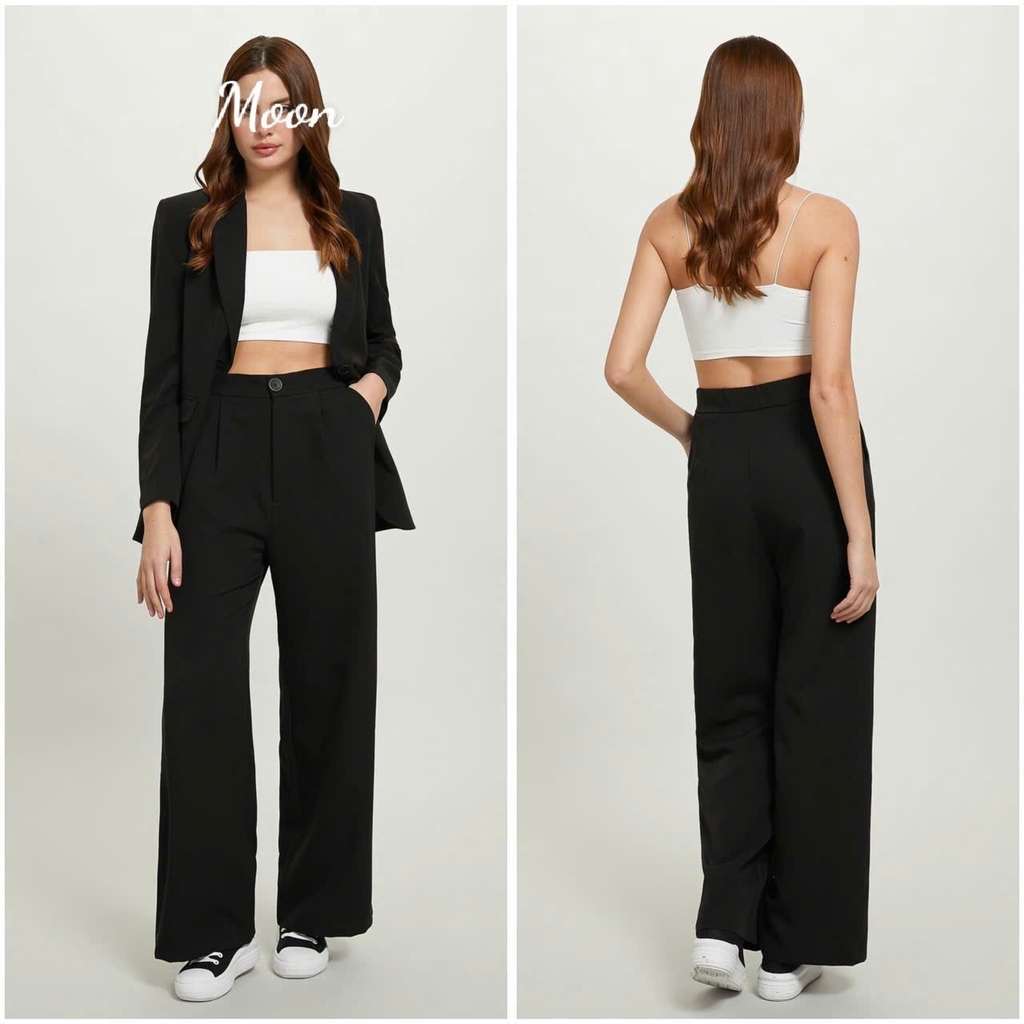 Chất vải tây mềm rũ, mặt vải như có phủ lớp nhung mặc cực mịn, và màu đen phủ nhung nên tuỳ ánh sáng chiếu nó sẽ hơi bạc bạc kiểu phủ nhung. Lưng quần thiết kế bán chun nhẹ phía sau mặc thoải mái, form mặc hack dáng, chị em diện đi làm đi chơi đều oki.