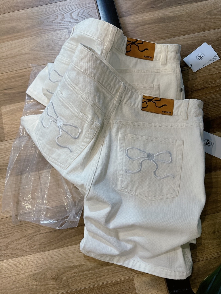 Quần shorts Ronron nơ săn mãi với được hàng này ra ưng quá ,full tag mạc hàng xuất Hàn. Chât jean cotton ko co giãn, form A lỡ lịch sự, dễ mặc và dễ phối ạ. Lưng cao, nơ thêu túi, màu trắng quá ư là xinh ạ.