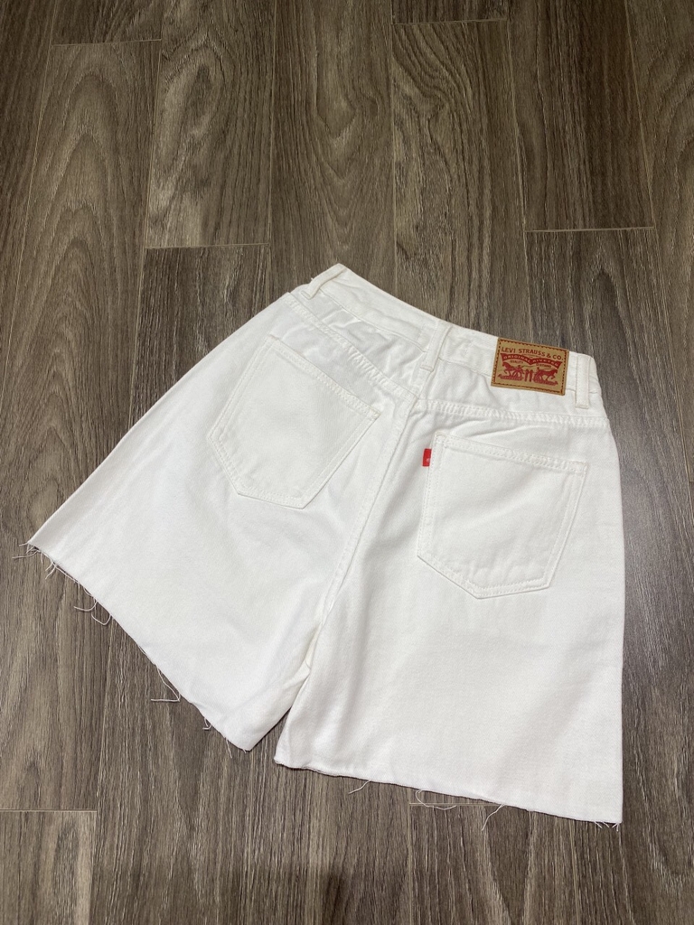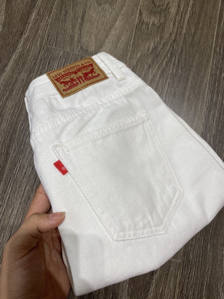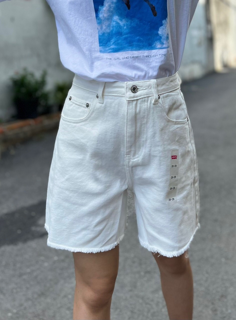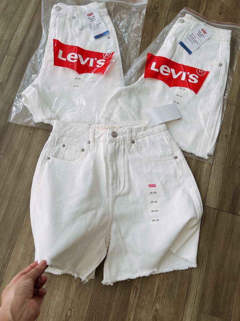 Shorts L.evis trắng dáng A hiếm có. Lưng cao gần đến eo nhé khách. Chất jean cotton nên ko giãn chút nào lun á. Hợp với nàng nào eo nhỏ mông to nè, ống thoải mái lịch sự, tua gấu trẻ trung. Em này đóng thùng đi làm chắc cũng oki lun á.