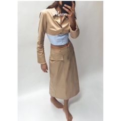 .Cái chất nó bao phê nha, chất cotton mềm mại mặc ko tôn eo ko lấy xiền lun. Nếu cao tầm 1.6 thì mặc áo vừa khít lưng váy ko hở nhé, còn ai cao mặc hở ngay đoạn eo nên đẹp nha, form này vậy mà mặc che bụng tốt ấy. Váy lưng cao đến eo, có túi thật, khoá kéo trước, váy dáng A dài 80cm. Áo dáng croptop trước dài hơn sau xíu. Hàng chuẩn đẹp bao check.